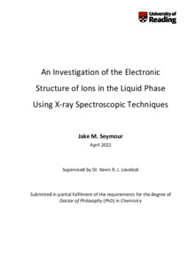 Seymour, J. M. (2022) An investigation of the electronic structure of ions in the liquid phase using x-ray spectroscopic techniques. PhD thesis, University of Reading. doi: 10.48683/1926.00113104
