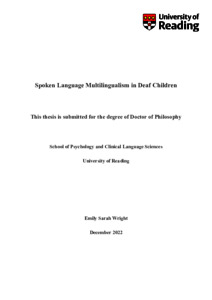 Wright, E. S. (2023) Spoken language multilingualism in deaf children. PhD thesis, University of Reading. doi: 10.48683/1926.00113142