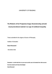 Bracewell, S. (2023) The rhetoric of the prospectus image. Deconstructing schools’ visual promotional material in an age of neoliberal inequality. PhD thesis, University of Reading. doi: 10.48683/1926.00113198