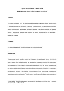 Legacies of Alexander in colonial Sindh: Richard Francis Burton and a ‘Greek pot’ at Sehwan.