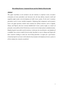 This paper contributes to the normative case for inclusion in corporate rescue, the future orientation of rescue procedures and showcases the role that African countries could and arguably ought to play in the development of viable rescue systems. To this end, it examines procedures used to rescue troubled companies. Deploying both comparative and normative lenses, the paper questions whether those common law African countries, such as Uganda, Ghana, and Nigeria, that have recently modified their rescue systems ought, as a matter of principle, to have followed the UK decision to restrict receivership in favour of administration. Emphasising the inexorable case for inclusion, it advocates the consideration and adoption of a modified ‘non-exclusive model of receivership’ that finds its roots in Ghana and Nigeria for those countries looking to retain the receivership procedure. It argues for a governance-oriented perspective of rescue which should orient the future development of rescue systems in all the common law countries considered.