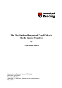 Isiaka, A. (2023) The distributional impacts of fiscal policy in middle income countries. PhD thesis, University of Reading. doi: 10.48683/1926.00113418