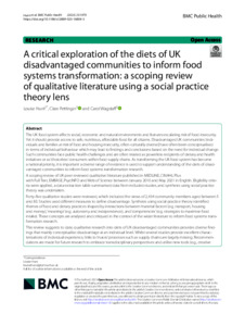 A critical exploration of the diets of UK disadvantaged communities to inform food systems transformation: a scoping review of qualitative literature using a social practice theory lens.