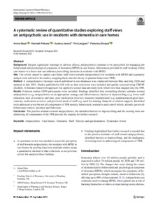 A systematic review of quantitative studies exploring staff views on antipsychotic use in residents with dementia in care homes.