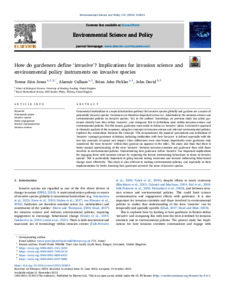 How do gardeners define ‘invasive’? Implications for invasion science and environmental policy instruments on invasive species.