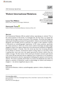 Can International Relations (IR) be studied without reproducing its violence? This is the central question of this article. To investigate this, the first step is to expose the violence that we argue remains at the heart of our discipline. The article thus begins by exploring the disciplinary practices firmly grounded in relations of coloniality that plague disciplines more broadly and IR in particular. An analysis of IR’s epistemic violence is followed by an autoethnographic exploration of IR’s violent practices, specifically the violent practices in which one of the article’s authors knowingly and unknowingly engaged in as part of an impact-related trip to the international compound of Mogadishu International Airport in Somalia. Here the article lays bare how increasing demands on IR scholars to become ‘international experts’ having impact on the policy world is pushing them more and more into spaces governed by colonial violence they are unable to escape. The final section of this article puts forward a tentative path toward a less violent IR that advocates almost insignificant acts of subversion in our disciplinary approach and practices aimed at exposing and challenging this epistemic and structural violence. The article concludes that IR does not need to be abandoned, but rather, by taking on a position of discomfort, needs to acknowledge its violence and attempt to mitigate it – one almost insignificant step at a time.