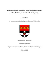 Butt, A. (2022) Essays on economic inequalities, gender and ethnicity: White, Indian, Pakistani, and Bangladeshi ethnic groups. PhD thesis, University of Reading. doi: 10.48683/1926.00113856