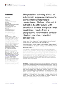 The possible 'calming effect' of subchronic supplementation of a standardised phospholipids carrier-based Melissa officinalis L. extract in healthy adults with emotional distress and poor sleep conditions: results from a prospective, randomized, double-blinded, and placebo-controlled clinical trial.