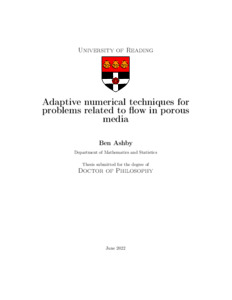 Ashby, B. (2022) Adaptive numerical techniques for problems related to flow in porous media. PhD thesis, University of Reading. doi: 10.48683/1926.00113929
