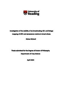 Richard, R. (2023) Investigation of the stability of six breadmaking QTL and linkage mapping of GPD and senescence metrics in bread wheat. PhD thesis, University of Reading. doi: 10.48683/1926.00113932