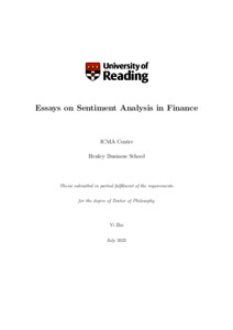 Zhu, Y. (2023) Essays on sentiment analysis in finance. PhD thesis, University of Reading. doi: 10.48683/1926.00113997