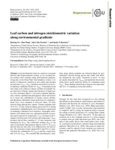 Leaf carbon and nitrogen stoichiometric variation along environmental gradients.