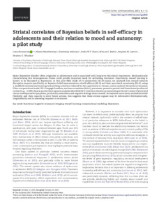 Striatal correlates of Bayesian beliefs in self-efficacy in adolescents and their relation to mood and autonomy: a pilot study.
