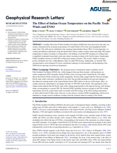 The effect of Indian Ocean temperature on the Pacific trade winds and ENSO.