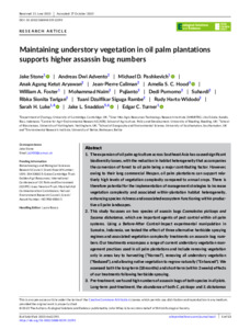 Maintaining understory vegetation in oil palm plantations supports higher assassin bug numbers