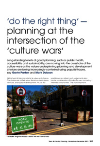 ‘Do the right thing’: planning at the intersection of the ‘culture wars’.