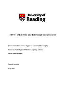 Kandaleft, D. (2022) Effects of emotion and interoception on memory. PhD thesis, University of Reading. doi: 10.48683/1926.00114203