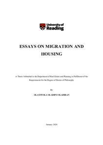 Oladiran, O. O. (2020) Essays on migration and housing. PhD thesis, University of Reading. doi: 10.48683/1926.00114245