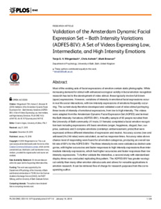 Validation of the Amsterdam Dynamic Facial Expression Set – Bath Intensity Variations (ADFES-BIV): a set of videos expressing low, intermediate, and high intensity emotions.