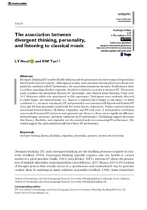 Hooi, L. Y. ORCID: https://orcid.org/0000-0001-8687-788X and Tan, K. W. (2024) The association between divergent thinking, personality, and listening to classical music. Psychology of Music, 52 (4). pp. 455-471. ISSN 1741-3087 doi: 10.1177/03057356231211824