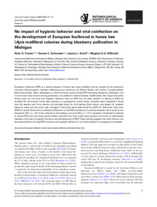 No impact of hygienic behavior and viral coinfection on the development of European foulbrood in honey bee (Apis mellifera) colonies during blueberry pollination in Michigan.