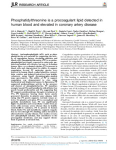 Phosphatidylthreonine is a procoagulant lipid detected in human blood and elevated in coronary artery disease.