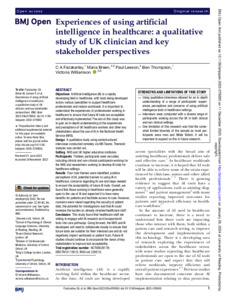 Experiences of using artificial intelligence in healthcare: a qualitative study of UK clinician and key stakeholder perspectives.