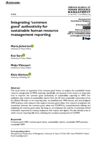 Järlström, M., Saru, E., Viitasaari, M. and Akrivou, K. ORCID: https://orcid.org/0000-0003-2212-6280 (2024) Integrating ‘common good’ authenticity for sustainable human resource management (HRM) reporting. German Journal of Human Resource Management, 38 (2). pp. 159-182. ISSN 1862-0000 doi: 10.1177/23970022241229035