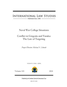 Schmitt, M. N. ORCID: https://orcid.org/0000-0002-7373-9557 (2024) Naval War College situation: conflict in Gregoria and Tanaka: the law of targeting. International Law Studies, 103. ISSN 2375-2831