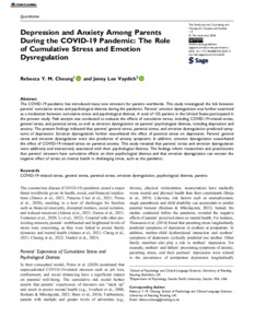 Depression and anxiety among parents during the COVID-19 pandemic: the role of cumulative stress and emotion dysregulation.