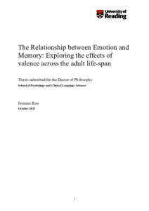 Raw, J. (2022) The relationship between emotion and memory: exploring the effects of valence across the adult life-span. PhD thesis, University of Reading. doi: 10.48683/1926.00114604