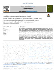 Audretsch, D. B., Belitski, M., Chowdhury, F. and Desai, S. (2024) Regulating entrepreneurship quality and quantity. Research Policy, 53 (2). 104942. ISSN 0048-7333 doi: 10.1016/j.respol.2023.104942