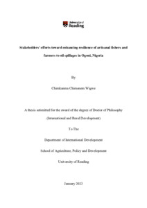 Wigwe, C. C. (2023) Stakeholders’ efforts toward enhancing resilience of artisanal fishers and farmers to oil spillages in Ogoni, Nigeria. PhD thesis, University of Reading. doi: 10.48683/1926.00114669
