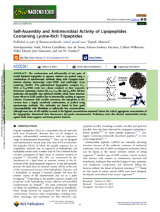 Self-assembly and antimicrobial activity of lipopeptides containing lysine-rich tripeptides.