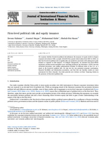 We examine whether firm-level political risk influences the issuance of equity (debt) to finance corporate investment. With a sample of 64,693 firm-quarter observations from 2002–2020, we find that firm-level political risk is significantly and positively associated with subsequent equity issuance as opposed to debt issuance. To mitigate endogeneity, we estimate firm fixed-effects regression, perform nearest-neighbor score matching technique and Heckman’s (1979) two-step correction procedure, and employ gubernatorial elections in different states of the U.S. as a shock to the firm-level political risk. We also test for two potential economic mechanisms, financial flexibility and information asymmetry, and find that our baseline results are more pronounced for these channels. Our study presents new evidence on firms’ financing choices in the presence of firm-level political risk.