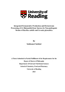 Suttikul, S. (2024) Integrated fermentative production and downstream processing of 2,3-Butanediol from sucrose by non-pathogenic strains of Bacillus subtilis and Serratia plymuthica. PhD thesis, University of Reading. doi: 10.48683/1926.00114782