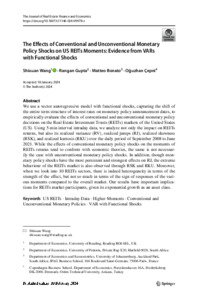 Wang, S. ORCID: https://orcid.org/0000-0003-2113-5521, Rangan, G., Matteo, B. and Oğuzhan, Ç. (2025) The effects of conventional and unconventional monetary policy shocks on US REITs moments: evidence from VARs with functional shocks. Journal of Real Estate Finance and Economics, 71. pp. 642-702. ISSN 1573-045X doi: 10.1007/s11146-024-09978-z