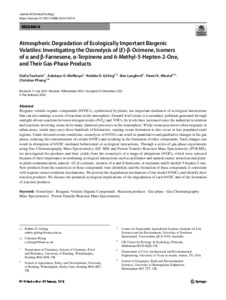 Uncontrolled Keywords Ozonolysis, Gas Chromatography Mass Spectrometry, Gas phase, Proton Transfer Reaction Mass Spectrometry, Biogenic Volatile Organic Compounds, Reaction products