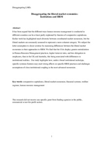 It has been argued that the different ways human resource management is conducted in different countries can be at least partly explained by theories of comparative capitalisms. Earlier work has highlighted much diversity between coordinated market economies, but the liberal markets are commonly assumed to represent a more coherent category. We subject the latter assumption to closer scrutiny by examining differences between the liberal market economies in their approaches to HRM. We find that the USA display greater centralization in Human Resource Management practices, higher turnover rates, and less delegation to employees, than in the UK and Australia, this being associated with differences in institutional realities. Our study highlights how, under a broad institutional archetype, specific systemic features may exert strong effects on specific HRM practices and challenges assumptions of close institutional coupling in the most advanced economies.