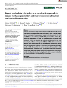 Fennel seeds dietary inclusion as a sustainable approach to reduce methane production and improve nutrient utilization and ruminal fermentation.