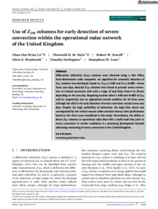 Differential reflectivity () columns were observed using a Met Office three‐dimensional radar composite. An algorithm for automatic detection of columns was developed, based on dB and dBZ. Across three case days, detected columns were found to precede severe convection in tracked convective cells with a range of lead times from 0 to 20 min depending on the case day. Requiring maxima above 1.4 dB and 30 dBZ of and respectively was an appropriate second condition for all three cases although the skill in the early detection of severe convection varied across case days. Despite the high probability of detections, the high false alarm rate accompanied by low critical success index and data latency limit performance based on the three cases considered in this study. Nevertheless, the ability to detect columns in operational radar data with a useful lead time prior to severe convection in certain conditions is a promising development towards advancing nowcasting of severe convection in the United Kingdom.