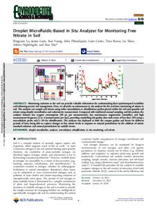 Droplet microfluidic-based in situ analyzer for monitoring free nitrate in soil.