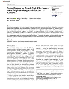 Seven mantras for board chair effectiveness—an enlightened approach for the 21st century