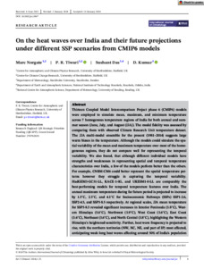 Norgate, M., Tiwari, P. R. ORCID: https://orcid.org/0000-0002-7580-0446, Das, S. and Kumar, D. ORCID: https://orcid.org/0000-0003-2253-4129 (2024) On the heat waves over India and their future projections under different SSP scenarios from CMIP6 models. International Journal of Climatology, 44 (3). pp. 973-995. ISSN 1097-0088 doi: 10.1002/joc.8367