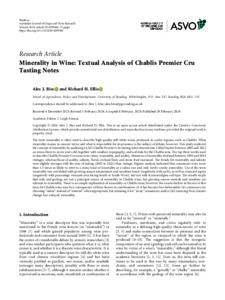 • [17] Rodrigues, H., Valentin, D., Otheguy, M., & Ballester, J. (2022). How to make a mineral wine ? Relationship between production type in the Chablis vineyard and the search for a mineral wine style. Oeno One, 56, 29–45. https://doi.org/10.20870/oeno-one.2022.56.2.4856