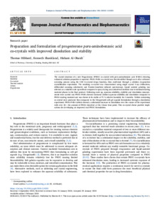Preparation and formulation of progesterone para-aminobenzoic acid co-crystals with improved dissolution and stability.