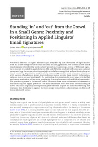 Standing ‘in’ and ‘out’ from the crowd in a small genre: proximity and positioning in applied linguists’ email signatures.