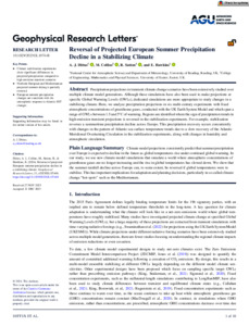 Reversal of projected European summer precipitation decline in a stabilizing climate.