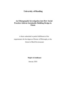 Al Jahdhami, M. (2024) An ethnographic investigation into how social practices inform sustainable building design in Oman. PhD thesis, University of Reading. doi: 10.48683/1926.00115580