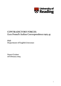 Crainer, S. (2024) Contradictory forces: Ezra Pound’s Italian correspondence 1925-45. PhD thesis, University of Reading. doi: 10.48683/1926.00115581